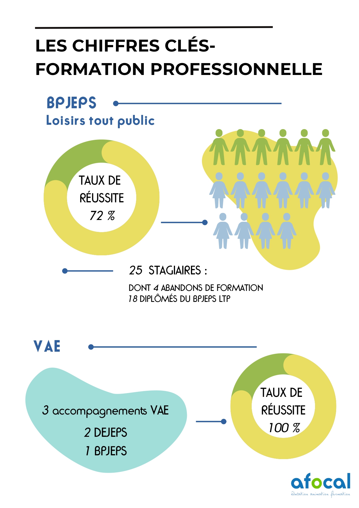 Sur l’ensemble de la promotion engagée en septembre 2022, nous comptons un nombre d’abandons en cours de formation plus conséquent que d’habitude. Pour les animateurs qui se sont présentés aux épreuves certificatives :